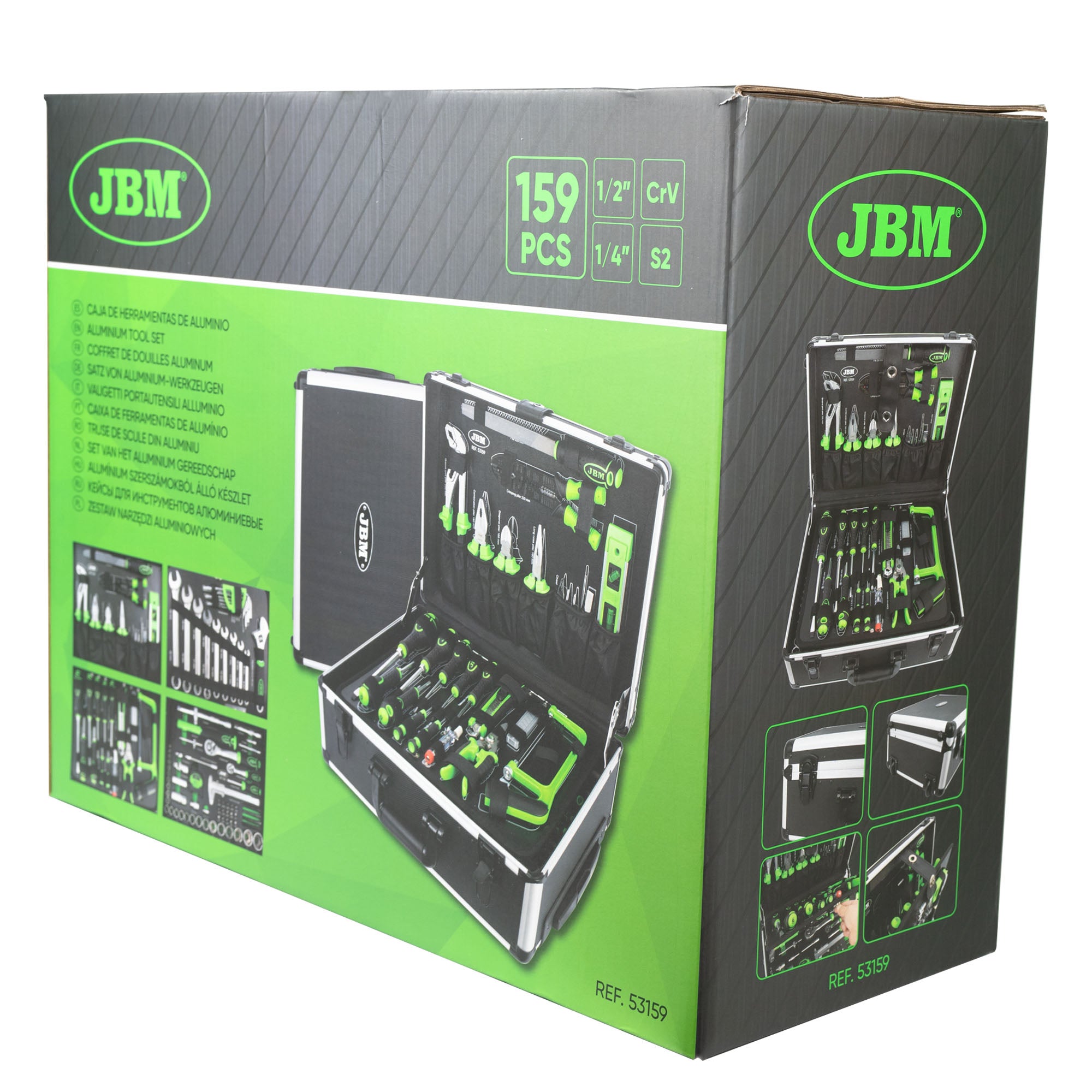 Caixa de ferramentas em alumínio 159 peças zincada JBM 53159