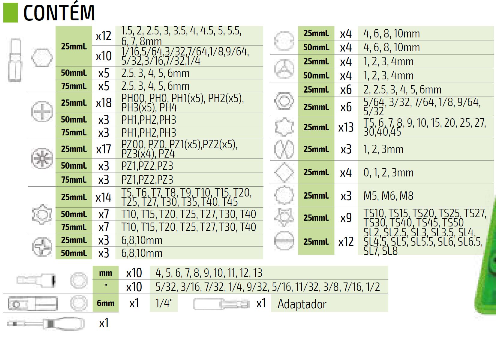 Kit de 208 bits de chave de fenda pontas JBM 53574